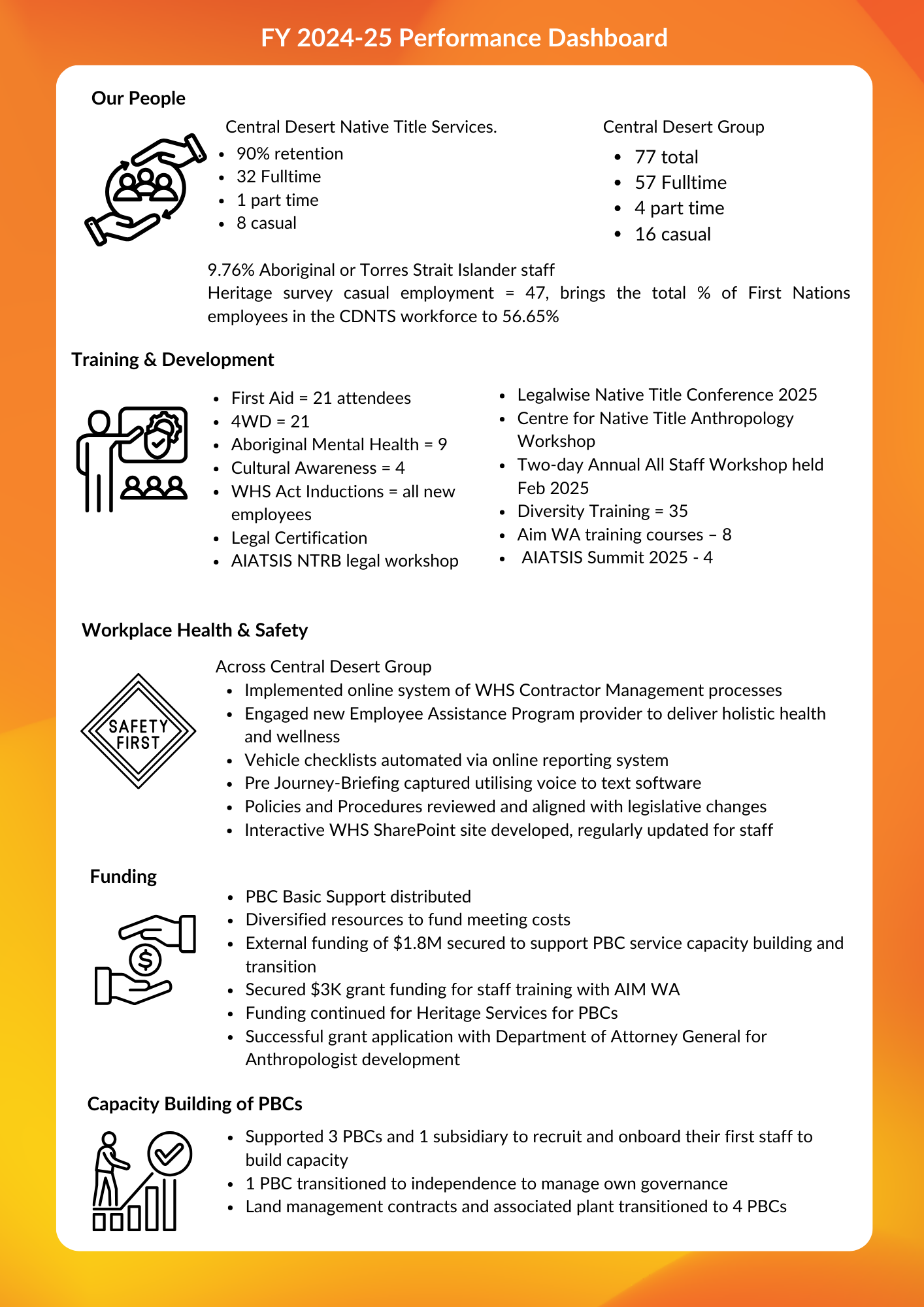 This financial year saw an increase in acquiring funding to support PBC capacity building, training programs and more staff.
