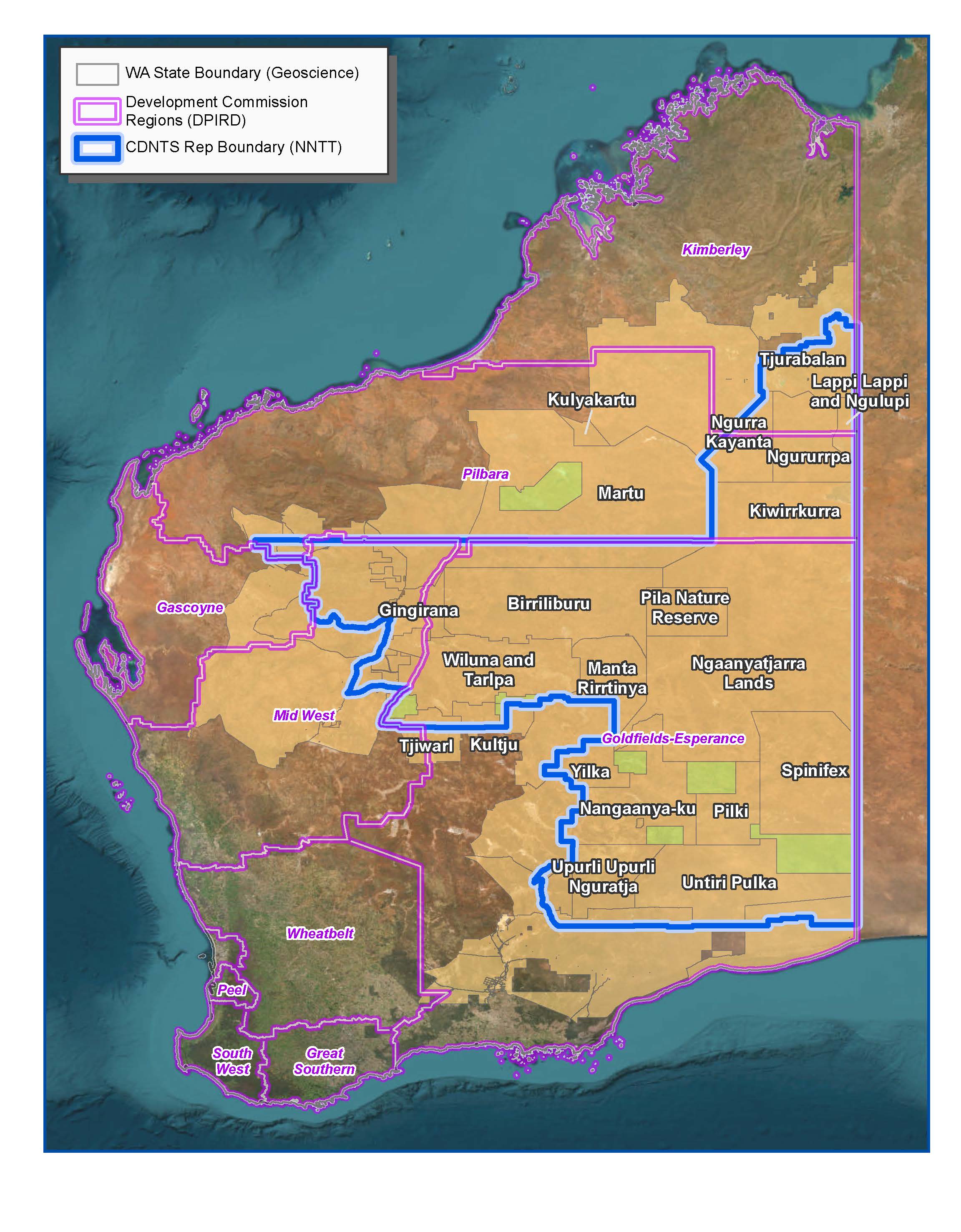 The "Service Area" or Representative Area also stretches across four (4) Development Commissions (Department of Regional Development) Regions, which influence WA State Government department program interactions with PBCs.