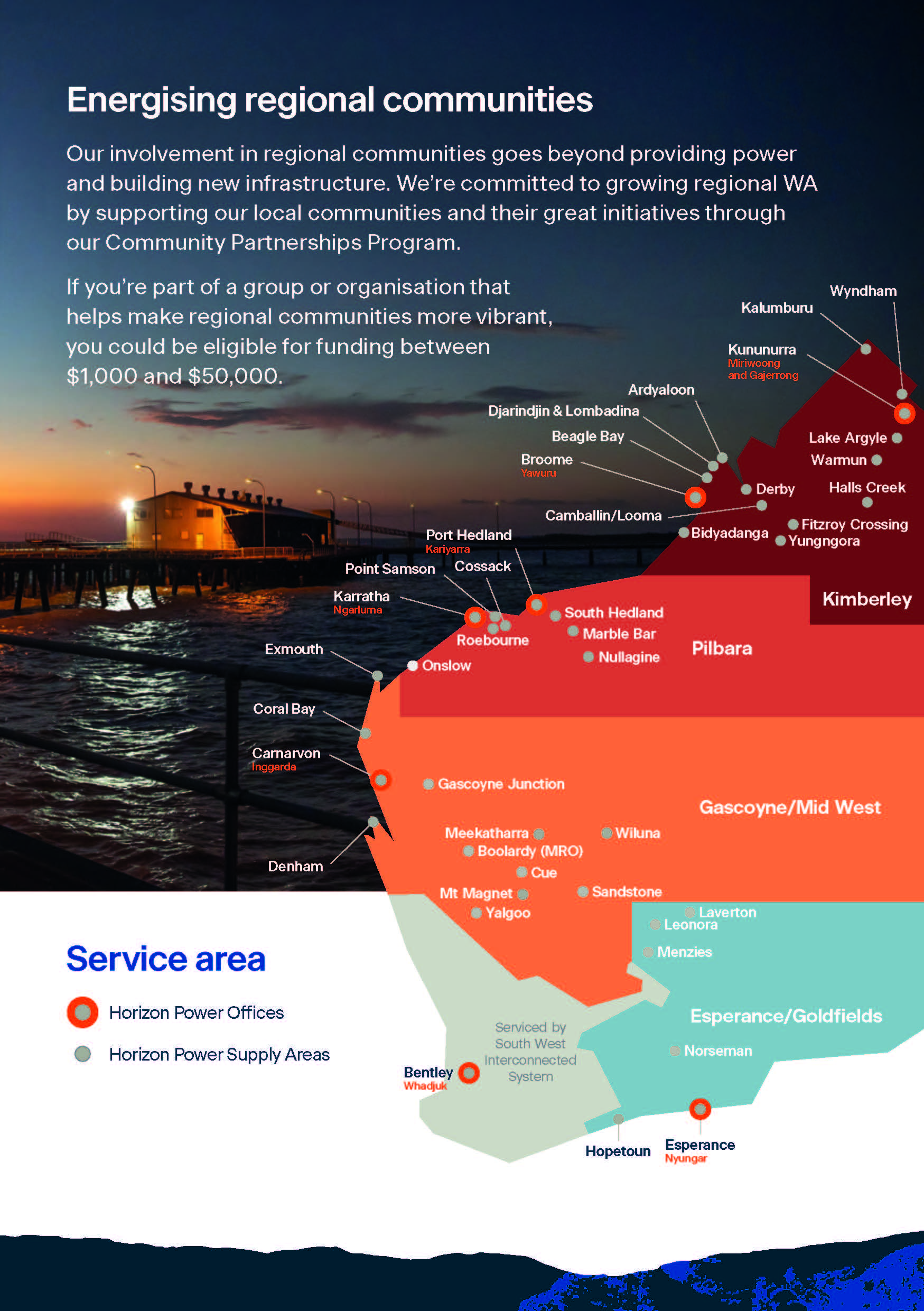 - Initiatives/events that are regionally based in Horizon Power’s service area